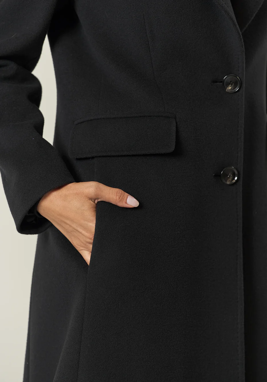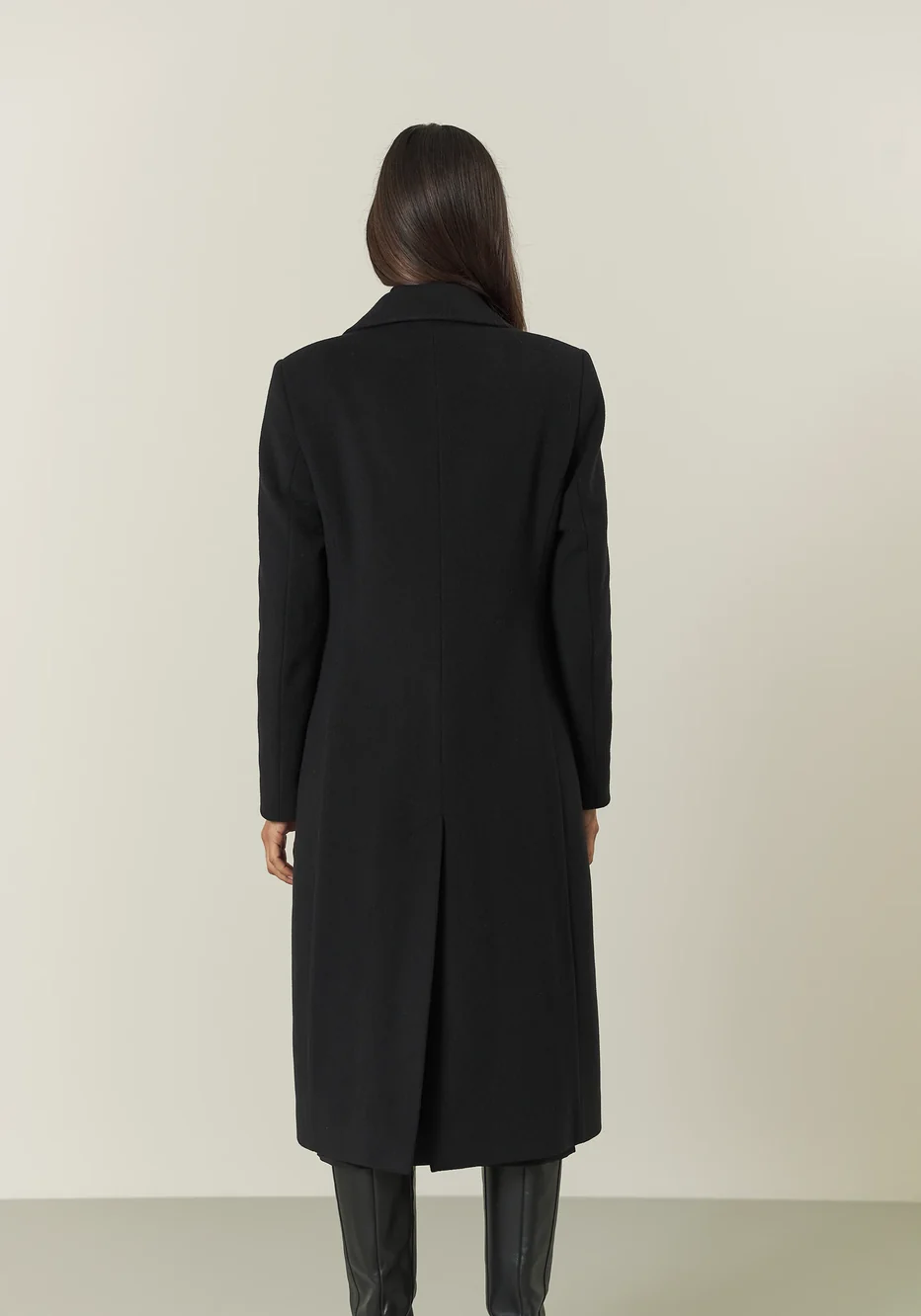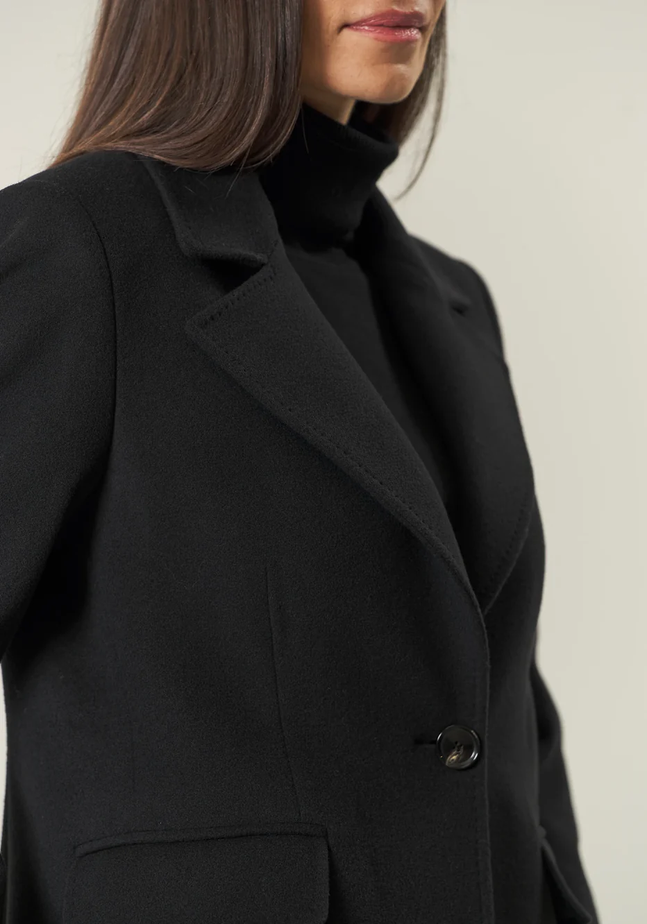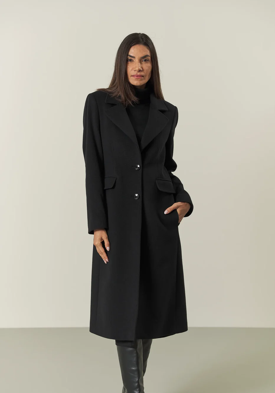 Pièce intemporelle, symbole d'élégance et de raffinement, ce long manteau en laine et cachemire mélangés , entièrement fabriqué en Italie , sublime la féminité par ses lignes épurées et son design sophistiqué. Sa fermeture à deux boutons et ses poches apportent une touche tailleur subtile, tandis que sa longueur midi garantit protection et style en toutes circonstances .