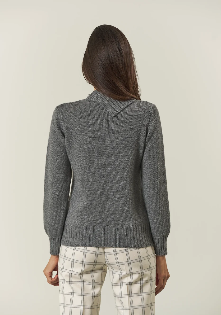Pull gris clair à col fendu avec tresse en mélange de cachemire